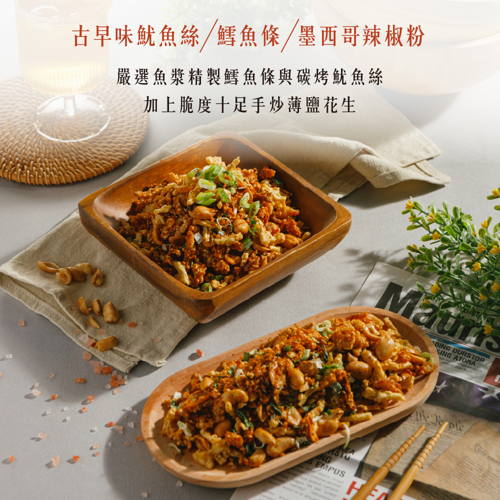 古早味魷魚絲、鱈魚條X墨西哥辣椒粉 混搭創新好滋味。